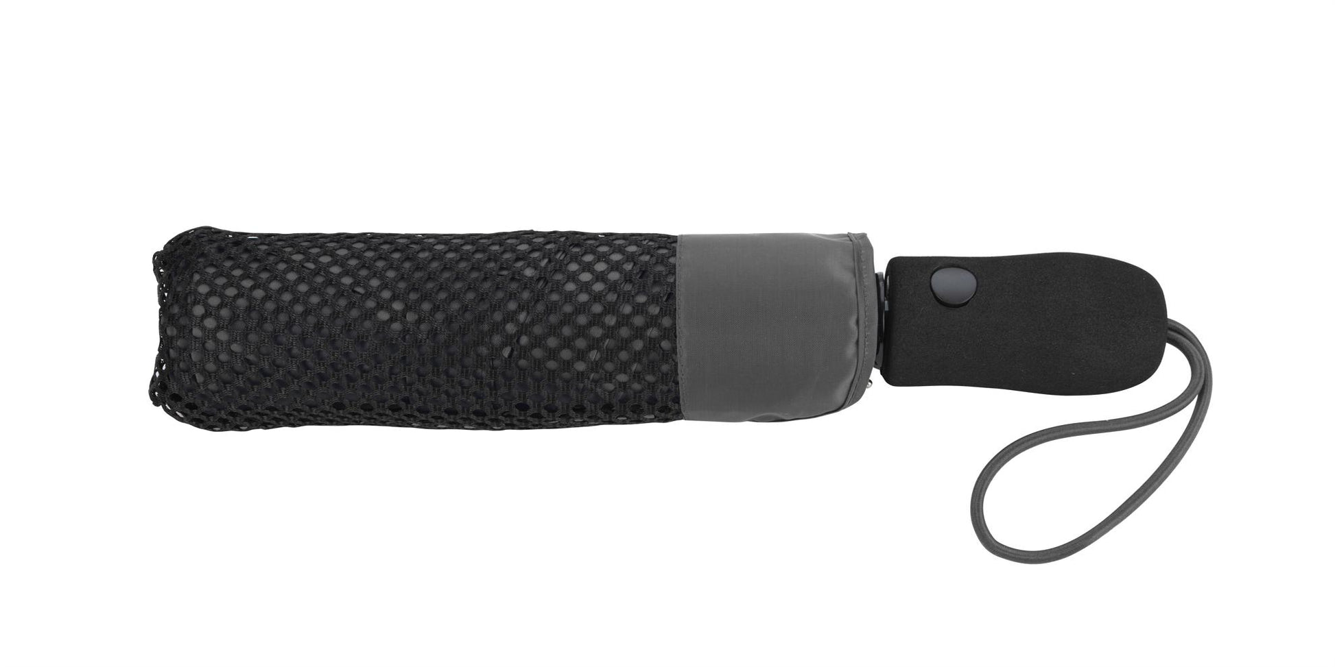 No matter the weather, Shed Rain has you covered. Experience ultimate on-the-go convenience with this compact umbrella that features a 42" arc and an effortless auto-open feature. Crafted with a vented PFAS-free canopy and durable steel shaft and ribs, it’s engineered to withstand windy conditions without inverting. Complete with a cushioned grip and matching fabric/mesh sleeve with bungee-cord wrist strap, it’s a practical addition to your work or school bag. Shed Rain covers this product with a lifetime warranty (excluding imprint).