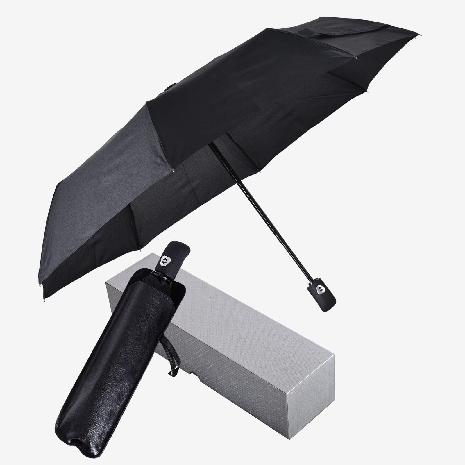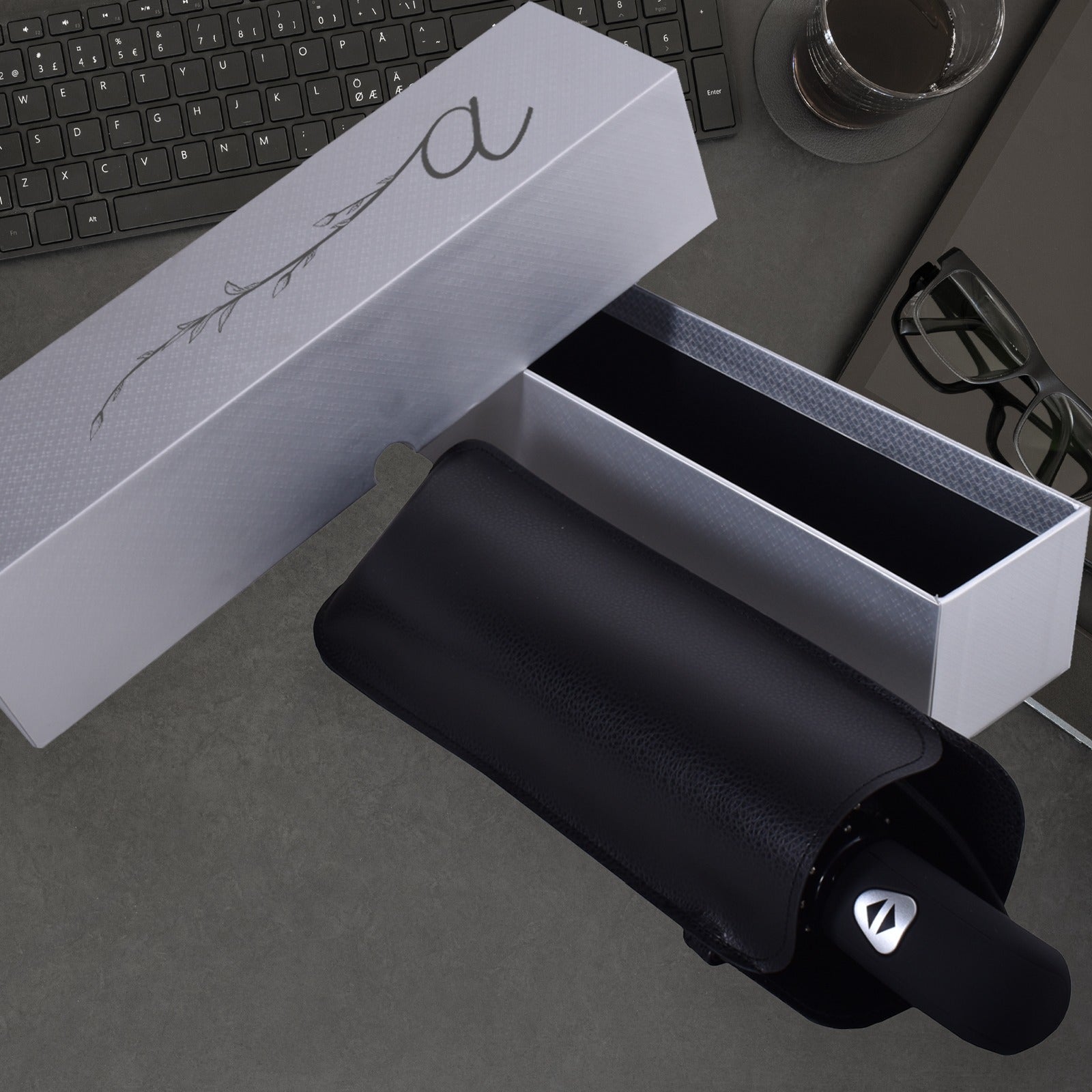 Stay dry from a storm and promote your business at the same time with this logoed umbrella! The Luxe Gift umbrella is a mini folding product that features an automatic open/close function, 42″ arc, rubberized handle and a vegan leather sleeve that can be debossed at an additional charge. Each umbrella comes packaged in a black or silver gift box. It’s a wonderful premium gift for any business!