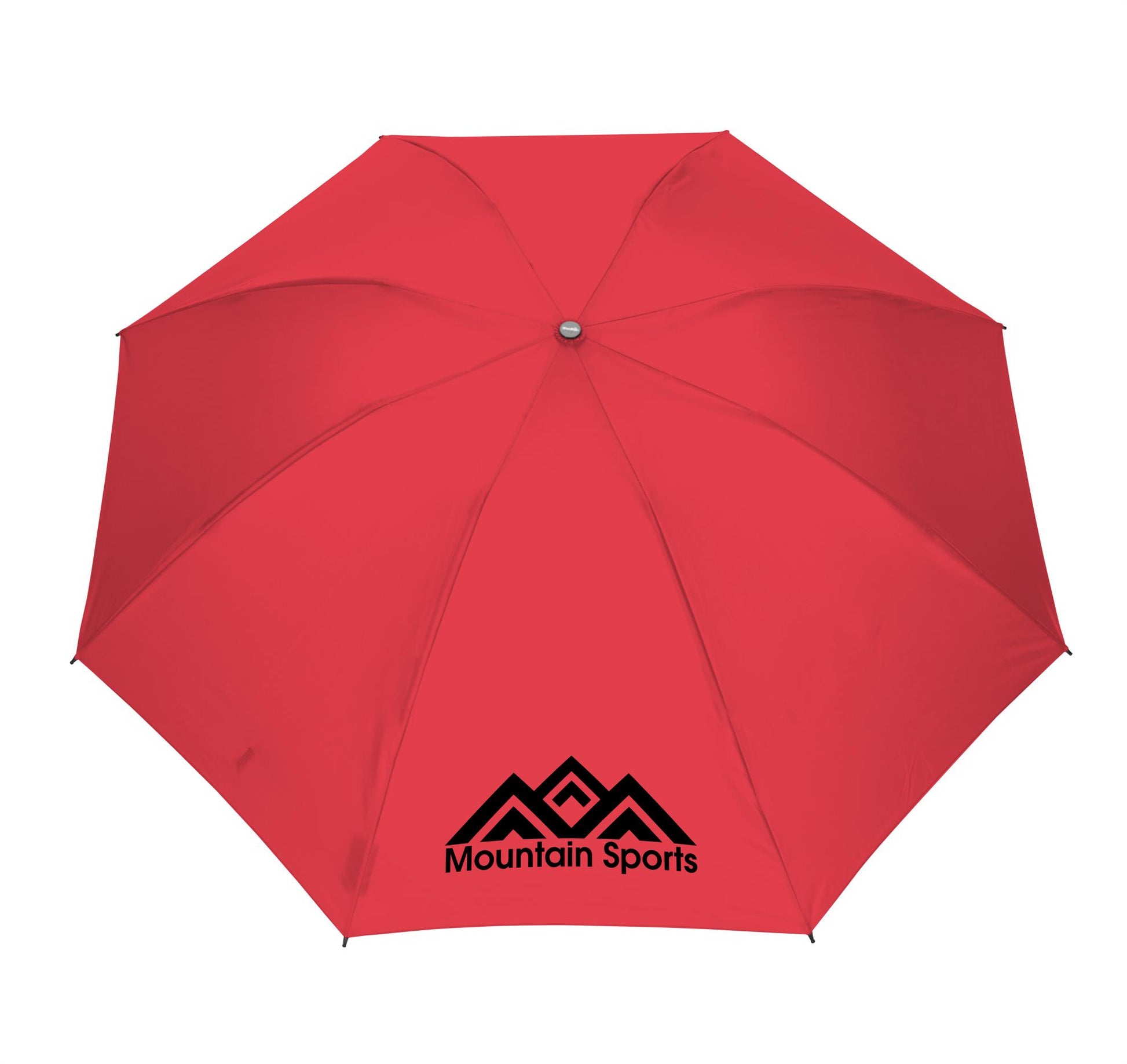 No matter the weather, Shed Rain has you covered. This automatic-open umbrella has a 47" arc and closes in reverse, pushing the water away from you to keep you dry everywhere you go. Black electrostatic steel and fiberglass ribs add durability. For extra style points, this compact umbrella features a rubber-coated handle with a button that matches the canopy color. When the skies clear up, it folds down quickly, slips into the included sleeve, and easily stashes away in your everyday bag. Canopy is made of PFAS-free material. Shed Rain covers this product with a lifetime warranty (excluding imprint).