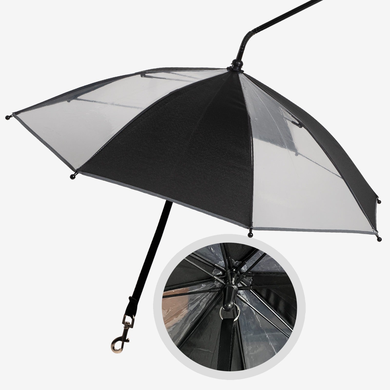 Keep your furry friend dry and stylish with The Doggo umbrella. Designed for small to medium-sized dogs (suggested weight under 25 lbs), this umbrella features four clear panels so you can always see your pet while they stay protected from the elements. The C-shaped handle provides better control and comfort, while the reflective trim ensures added safety during nighttime walks. With a manual open and close mechanism and a bendable gooseneck shaft, the umbrella allows for better positioning to keep your dog dry in all conditions. Keep your pup cozy and protected with The Doggo umbrella—rainy days are no longer a problem for you and your best friend!