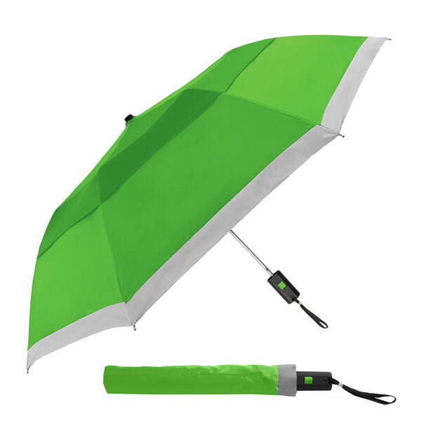 Stylish by Day, SAFE by Night — thanks to the 1″ reflective strip bordering its entire canopy, you’ll be safe no matter the weather! It’s also equipped with a wind vent, windproof frame, auto-open convenience and much more.